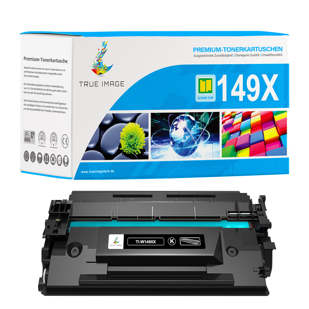Die kompatiblen HP 149X W1490X Tonerkartuschen von True Image bieten außergewöhnliche Druckqualität. Sie liefern klare, brillante und konsistente Ergebnisse, vergleichbar mit Originalkartuschen. Unsere kompatiblen HP 149X Tonerkartuschen werden strengen Tests unterzogen, um die Einhaltung von Industriestandards zu gewährleisten und zuverlässige Leistung für alle Ihre Druckanforderungen zu gewährleisten.