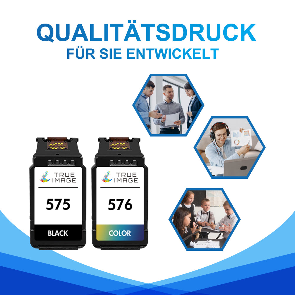 Mit den True Image kompatiblen Patronen PG575+CL576 profitieren Sie von einem signifikant niedrigeren Druckpreis pro Seite. Unsere Canon Tintenpatronen bieten nicht nur eine hohe Seitenreichweite, sondern auch eine bemerkenswert günstige Druckkostenstruktur. Egal, ob Sie eine große Anzahl von Dokumenten drucken müssen oder regelmäßig Farbdrucke benötigen - mit True Image drucken Sie zu einem Bruchteil der Kosten von Originalpatronen. Dies macht diese Tintenpatronen zu einer kosteneffizienten Lösung für Büros, Unternehmen und Privatanwender, die regelmäßig drucken.
