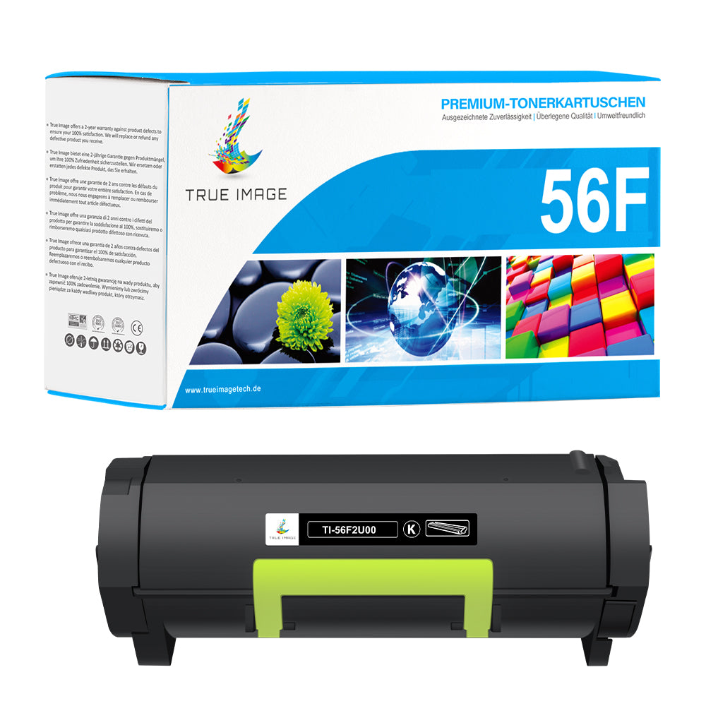 Der Lexmark 56F2000 kompatible Toner ist sofort einsatzbereit: auspacken, einsetzen und drucken. Zudem wird er unter umweltfreundlichen Standards produziert, wodurch Ressourcen geschont werden. So drucken Sie günstig, zuverlässig und nachhaltig.