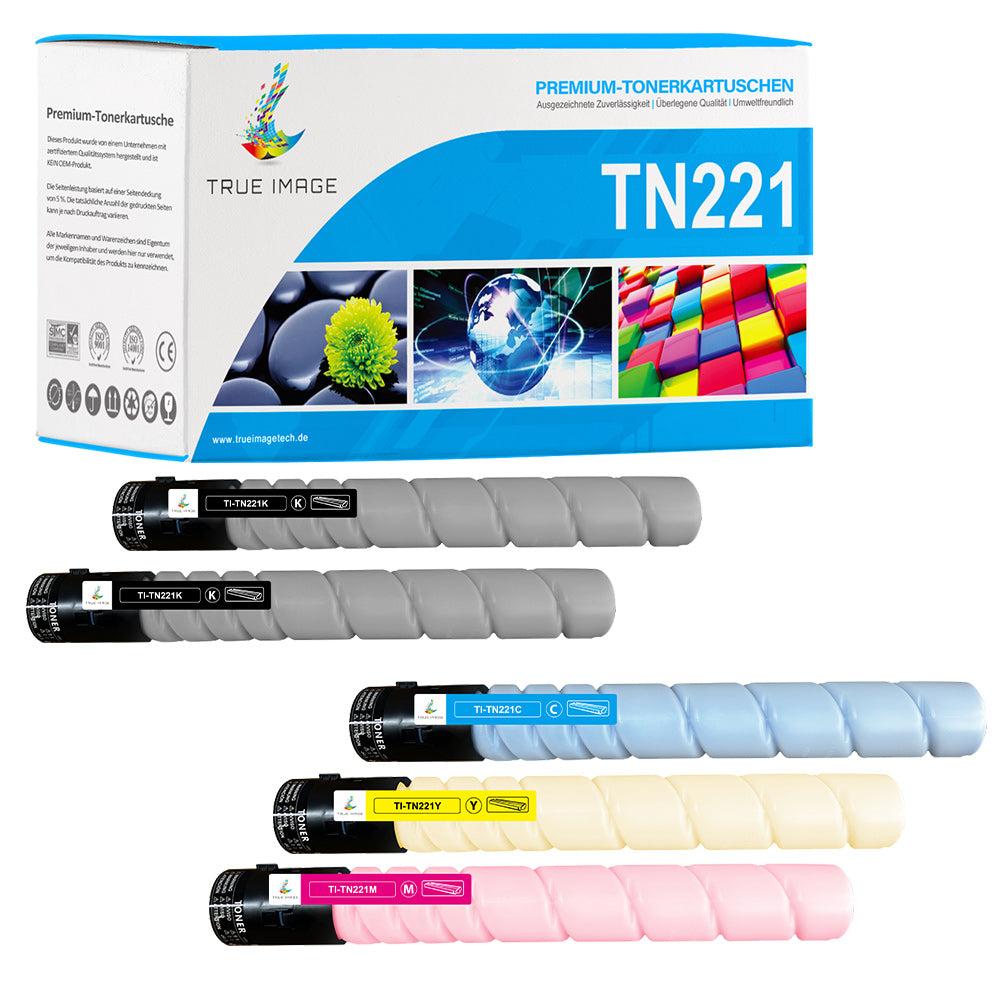 Von Toner bis Fotosensortrommel, vom Chip bis zum Kunststoffgehäuse – True Image setzt auf sichere und umweltfreundliche Materialien. Alle Materialien werden strengen Prüfungen unterzogen, um sicherzustellen, dass das kompatible Minolta TN-221 Toner-Set weder ausläuft noch verblasst, Gerüche entwickelt oder bei langfristiger Verwendung Sicherheitsrisiken birgt. Es entspricht außerdem den Umweltauflagen, sodass Sie mit einer hochwertigen Tonerkartusche einen Beitrag zum Umweltschutz leisten können.