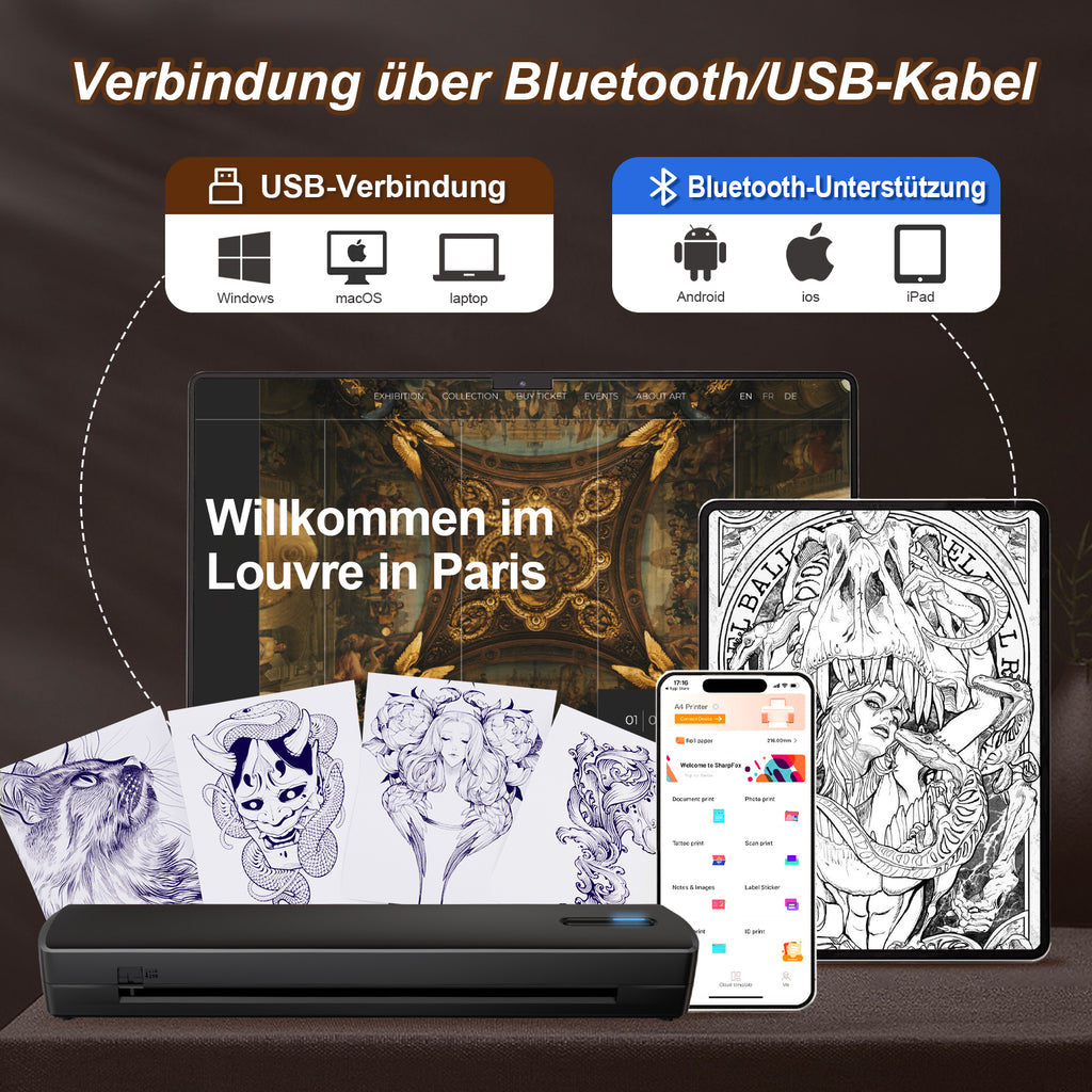 Dieser tintenlose Drucker ist auch mit Tattoo Transferpapier kompatibel. Bestellen Sie noch heute Premium-Transferpapier für den Tattoo Schablonendruck!
